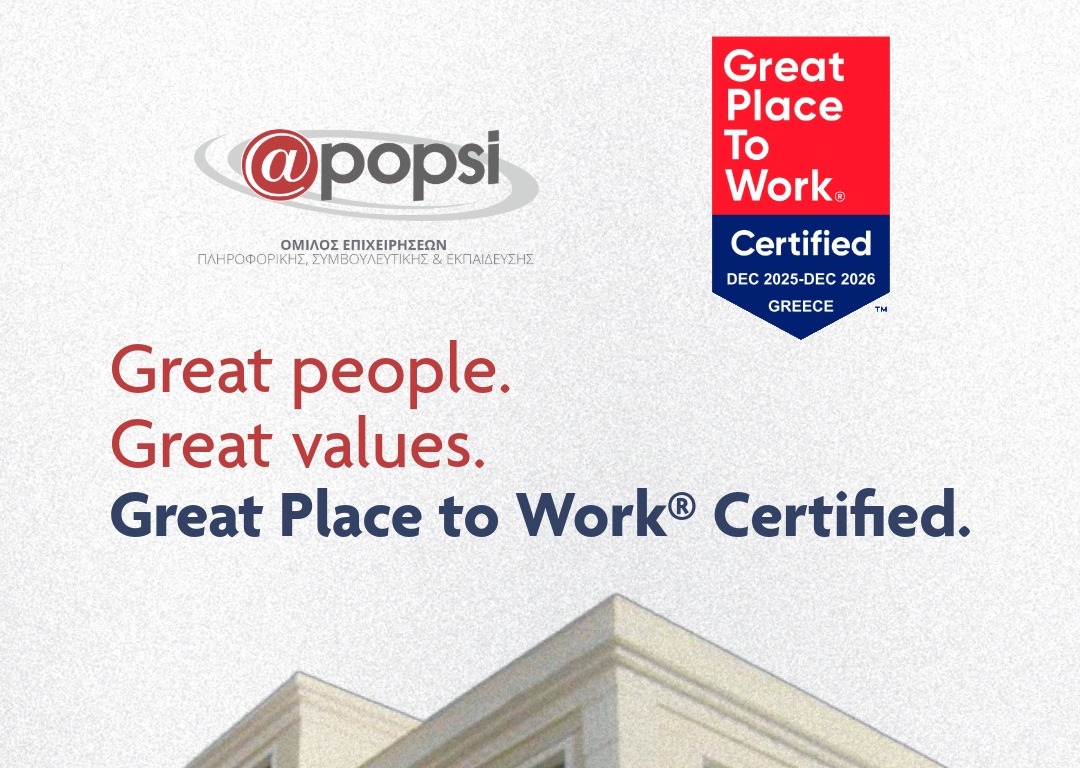 Για ακόμη μία χρονιά, ο Όμιλος Επιχειρήσεων ΑΠΟΨΗ αναγνωρίζεται επίσημα ως Great Place to Work για την περίοδο 2025–2026.